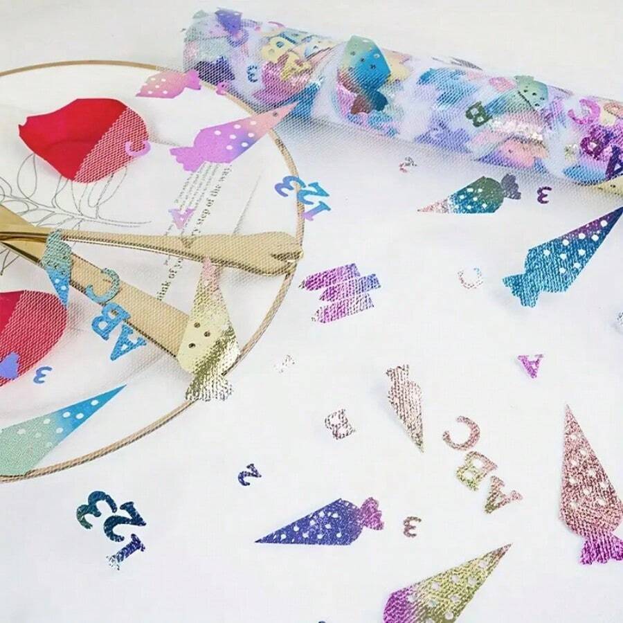 1 rouleau Chemin de table en bonbon de carotte coloré, chemin de table de fête brillant avec impression de lettres colorées, convient pour l'anniversaire, la fête à thème, Pâques, la remise des diplômes, la rentrée scolaire. Décoration de table élégante et mignonne en iridescent, emballage cadeau en tulle