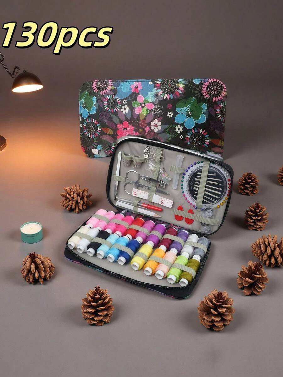1 set d'outils de couture portables imprimés, kit d'outils de couture pratique pour la maison - 10 pièces/45 pièces/86 pièces/130 pièces Boîte de fils, aiguilles, enfileur, fournitures de couture artisanales, comprend une boîte en tissu - Ensemble complet d'outils d'artisanat et de réparation avec des fils de couleurs assorties, convient aux voyages et à l'utilisation domestique des dames - Fournitures d'artisanat essentielles toute l'année