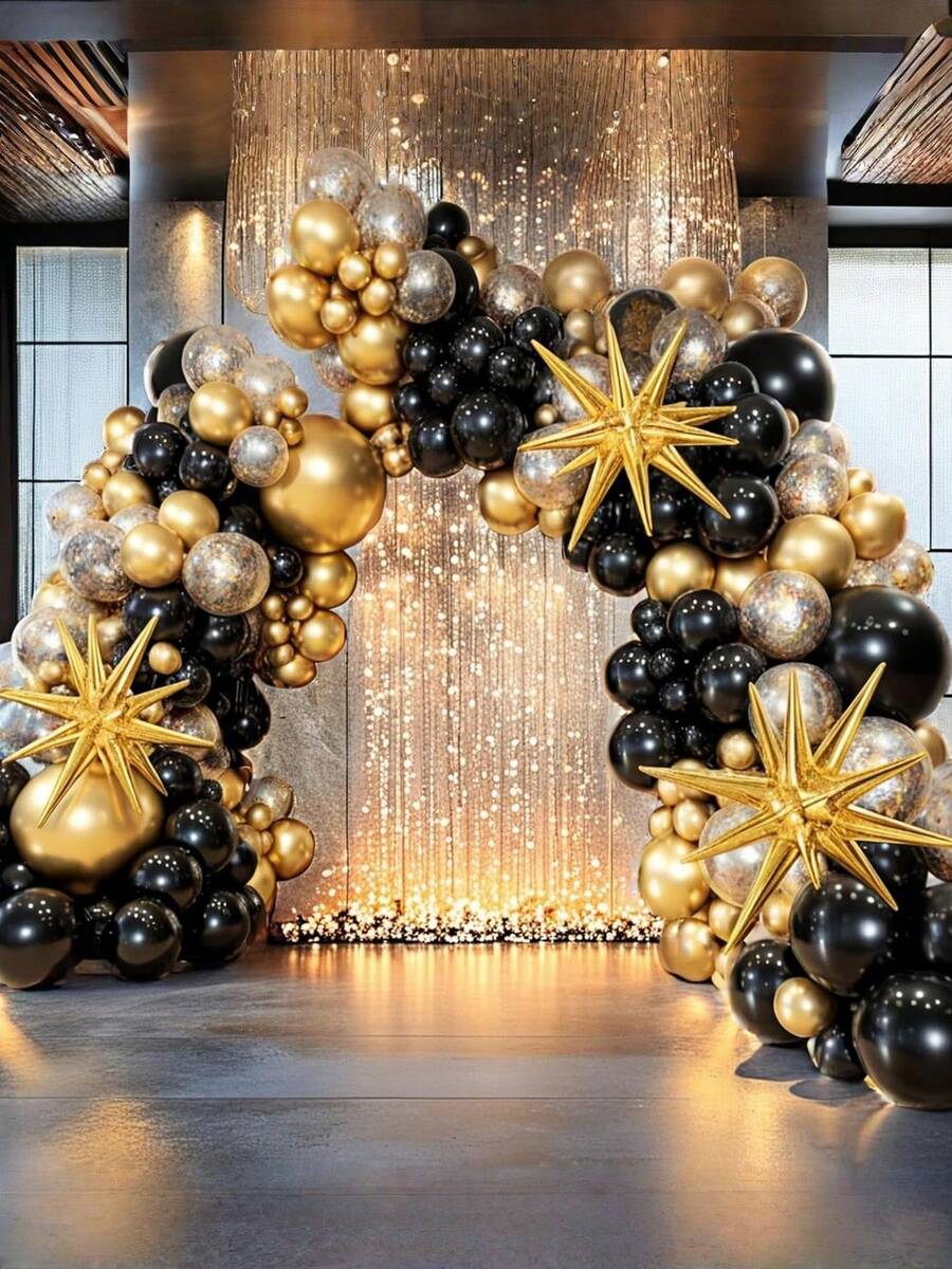 121 pièces/set Kit d'arche de guirlande de ballons noirs et dorés, ballons confettis noirs et dorés avec étoiles, pour la décoration de fête du Nouvel An, d'anniversaire, de mariage