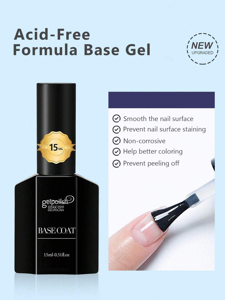 15 ml Base Gel pour vernis à ongles gel, 16 ml Fond de teint transparent sans essuyage pour une manucure UV longue durée DIY à la maison
