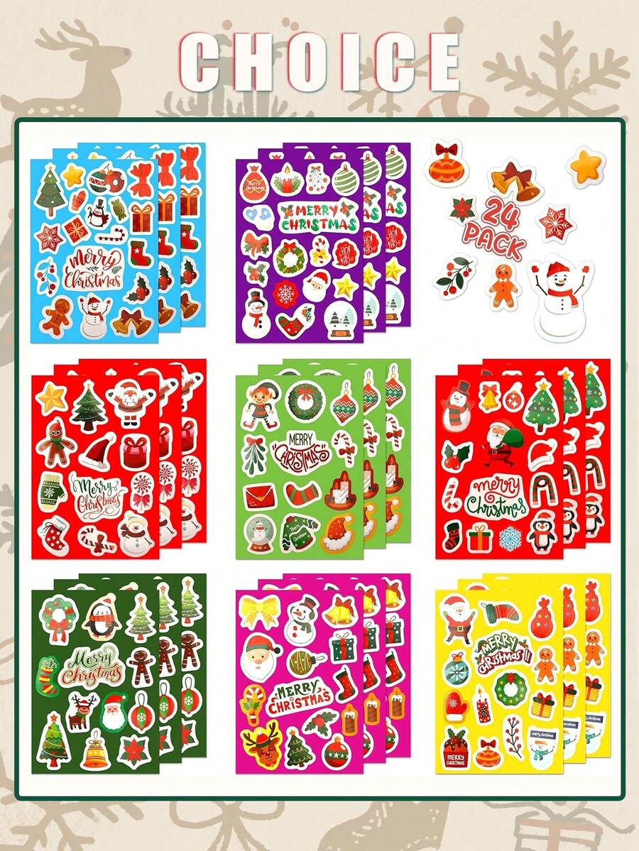 16 pièces Autocollants de Noël pour enfants - Thème joyeux, décorations de fête d'hiver, remplisseurs de sacs cadeaux de Noël et faveurs de fête