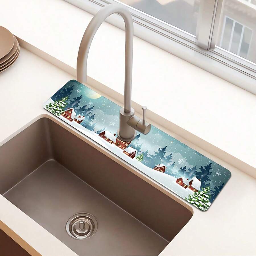 1 pièce Tapis de bonde en silicone antidérapant de la série Ambiance de Noël, tapis de bonde de cuisine, convient pour la protection et la décoration des robinets de salle de bain et de cuisine.