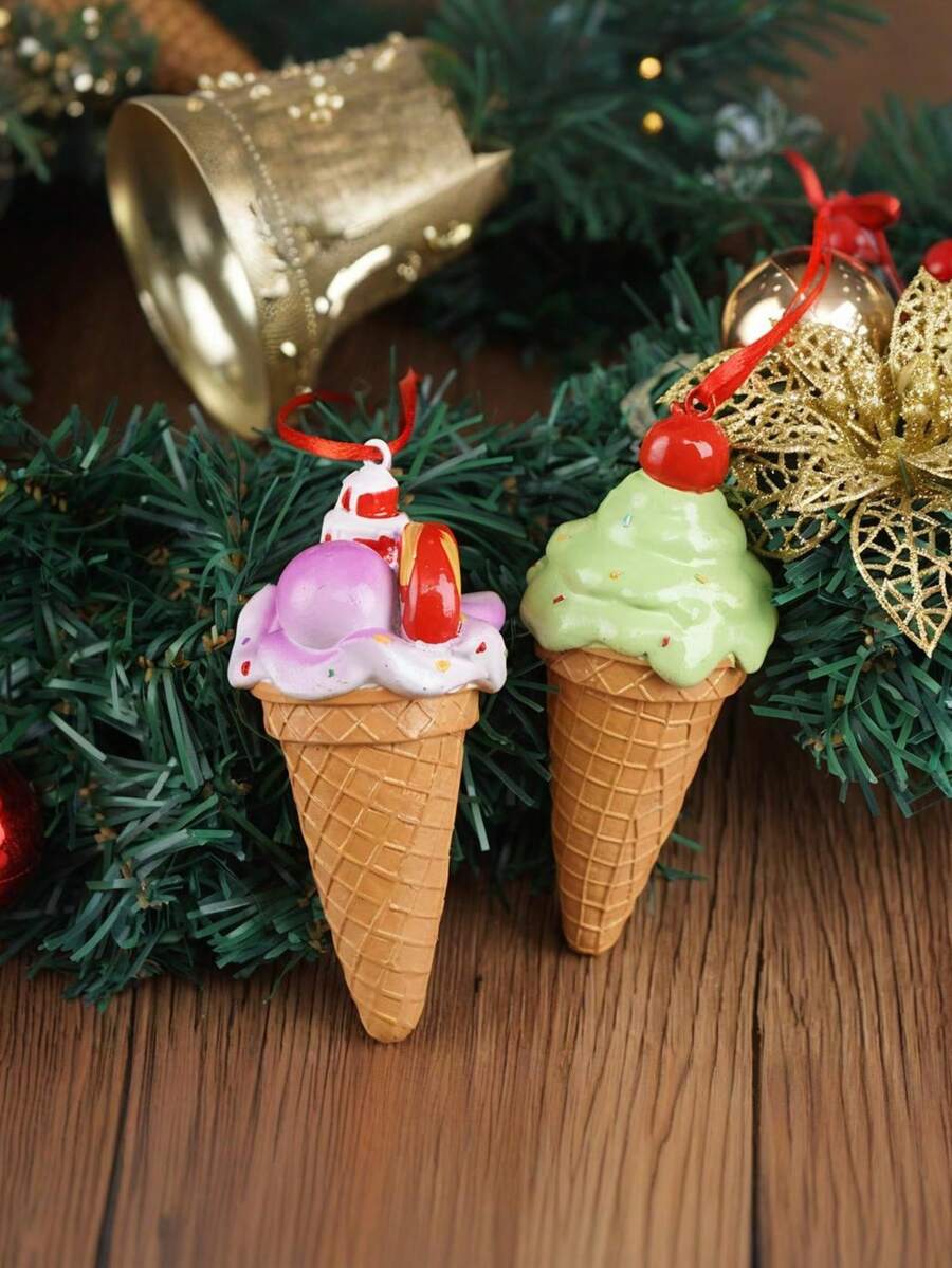 1 pièce Ornement de Noël en forme de crème glacée créative, sapin de Noël, style de Noël doux et vivant, plein d'une atmosphère sucrée, décoration de Noël, décoration de maison, cadeau de Noël.