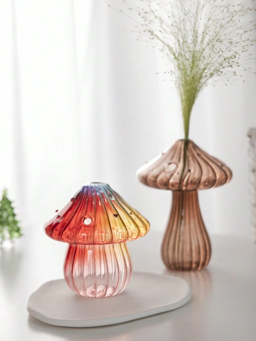 1 pièce Vase en verre en forme de champignon mignon, vase d'hydroculture transparent pour la décoration de la maison, artisanat fait main peint par pulvérisation multicolore, convient pour le salon, la décoration de la table à manger, le plante d'hydroculture transparente, les cadeaux de décoration de la maison, la décoration de la chambre pour l'anniversaire et la remise des diplômes, vase à fleurs