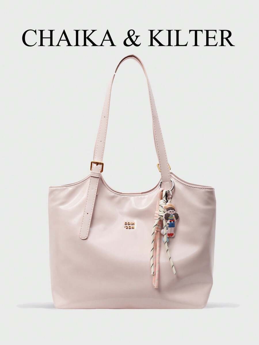1 pièce Sac d'épaule mode en matériau PU de couleur unie, sac vintage casual avec fermeture éclair à pression, grand sac fourre-tout capacité adaptée pour le voyage, le shopping, les sorties, cadeau pour femme, convient aux adolescentes, étudiantes, débutantes et femmes de bureau, idéal pour le bureau, les études, le travail, les déplacements, l'extérieur, les voyages et les sorties (vendu avec pendentif)