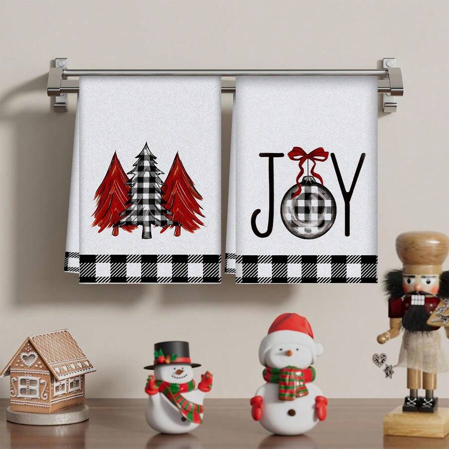 2/4 pièces Set Serviettes de Noël, Joyeux Noël, Serviettes de Cuisine Super Absorbantes, Séchage Rapide, Serviettes Imprimées en Polyester, Chiffons de Nettoyage de Cuisine, Chiffons, Fournitures de Cuisine. Cadeau de Noël!