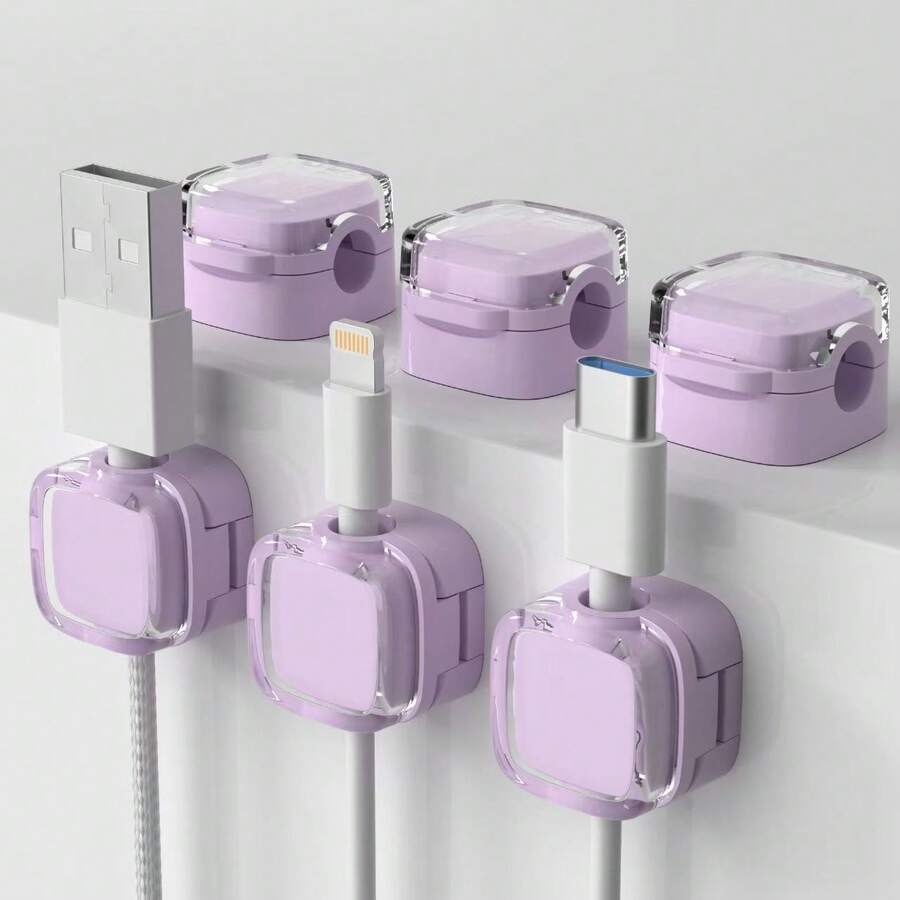6 pièces Clips de câble magnétiques minimalistes, support de câble adhésif multi-fentes, organisateur de câble USB/d'alimentation pour bureau/table de chevet - plus de désordre de câbles