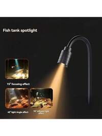 1 pièce Projecteur LED pour aquarium, éclairage paysager mini, alimenté par USB, lumière haute luminosité pour aquarium de bureau, lumière supplémentaire pour la croissance des plantes, lampe à pince, angle d'éclairage réglable (15°/30°/45°), tête de lampe en alliage d'aluminium, tube de lampe flexible à 360°, gradation 3 couleurs. Convient pour l'amélioration de la couleur du paysage des plantes d'aquarium domestique, l'éclairage des reptiles, la décoration du salon, les vacances et les cadeaux. Aquarium LED dynamique, mini aquarium avec lumières de décoration tropicales, poissons en mouvement, lampe sensorielle, support mural, décoration de scène océanique, convient pour la chambre, le salon, le bureau, décoration d'aquarium, détente au bureau, éclairage thème marin, commande par interrupteur