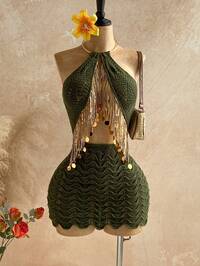 SoleiaSoleia Robe en tricot brodée d'étoiles de mer ombré vintage pour femmes, avec décolleté ras-du-cou, dos nu et liens. Convient pour les fêtes, soirées, rendez-vous, vacances à la plage, tenues d'été, vacances, thé de l'après-midi, croisière au bord de , vacances en ville, vacances bohèmes, festivals de musique. Peut être portée à l'intérieur ou à l'extérieur, convient pour toutes les saisons.