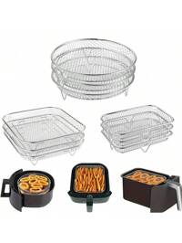 1 pièce/3 pièces/set accessoires de friteuse à air, support de friteuse à air rond, accessoires de friteuse à air multi-usages, grille de vapeur, grille empilable en acier inoxydable, grille de déshydratation, panier de barbecue, grille de barbecue, panier d'égouttage, grille de filtre, panier de friture, pinceau à huile, set de pinces à aliments