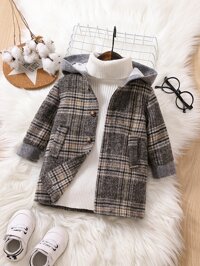 PipplinSHEIN Veste matelassée à carreaux pied-de-poule pour bébé garçon en automne et hiver, pull à manches longues en tricot, coupe ample, style coréen, confortable, polyvalent, convient pour l'intérieur, l'extérieur, le port quotidien, les sports, les jeux, les fêtes, la photographie