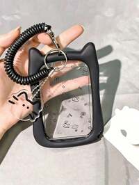 Porte-cartes en silicone thème chat avec porte-clés - Protecteur d'identité étudiant élégant, convient pour les cartes de bus, de métro et de campus | Design de chat mignon, matériau transparent, décoré de pattes colorées et d'étoiles, un accessoire essentiel pour les étudiants | Forme de chat mignon | Matériau en silicone, accessoire mignon pour tous les jours, fournitures de bureau, fournitures scolaires, articles ménagers, porte-cartes étudiant NEW