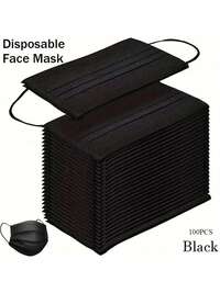 100 pièces/50 pièces Masque facial noir respirant pour adultes - Hypoallergénique, tissu respirant, ajustement confortable, avec des boucles d'oreille élastiques, sans batterie, masque facial épais et respirant
