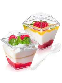 50 pièces Gobelets en plastique transparent, Coupes carrées à mousse, Coupes à dessert avec couvercles et cuillères - Durables, étanches, idéales pour salade de fruits, glace, yaourt parfait, pudding, également adaptées pour les fournitures de fête, les accessoires de vaisselle et les pique-niques en plein air, Capacité 2 oz/60 ml