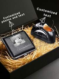 Étui à cigarettes en acier inoxydable et faux pour hommes, cadeau de la Saint-Valentin pour elle, décorations de la Saint-Valentin (pour la maison), décoration de la Saint-Valentin, cadeau pour la petite amie, cadeau pour la femme, mariage, personnalisable avec nom, date et bénédictions, résistant à l'humidité et incassable, peut contenir 7 cigarettes épaisses ou 9 cigarettes moyennes, parfait pour les cadeaux de fête comme Noël ou la fête des pères, 1 pièce