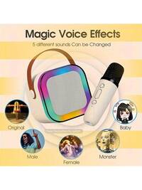 Enceinte karaoké sans fil portable avec lumière LED - Microphone sans fil, design arc-en-ciel coloré, batterie rechargeable, convient pour les fêtes en extérieur, les moments de famille et les vacances amusantes. Enceinte portable | Microphone moderne | Enceinte portable avec boutons de contrôle simples, convient pour les fêtes de famille, les anniversaires, le chant à plusieurs, les fêtes de vacances, les cadeaux d'Halloween, les cadeaux de Noël, la meilleure ambiance pour le chant.