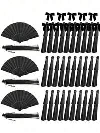 madeby BLANC1/2/3 pièces Éventail pliant noir classique, cadeau de rafraîchissement d'été, éventail pliant noir élégant et , facile à transporter et à ranger dans un sac, pour mariage, fête, représentation, danse, décoration de la maison, festival et cadeaux d'anniversaire, de remise de diplôme Éventail à main brillant, grand éventail à main pliable et lumineux, en matériau imperméable, convient pour le tai-chi, les rassemblements familiaux, les concerts, la saison de remise des diplômes, la rentrée scolaire, les représentations de danse, la décoration, les mariages, les cadeaux d'anniversaire, les cadeaux de la Saint-Valentin, les représentations sur le thème de l'anniversaire et les fêtes de vacances, pack de groupe 3/15/30 pièces Set, Série verte d'été Ensemble de cadeau de mariage, Éventail pliant pour dames, Série verte Nœud papillon, Sac à cordon transparent, Décoration de fête de mariage. Convient pour les cadeaux de mariée, les faveurs de fête d'anniversaire, les accessoires photo pour demoiselles d'honneur, les éventails d'été, les fournitures pour événements et fêtes, les sacs-cadeaux de fête en plusieurs paquets.