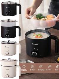 RAF 1-2 personnes Cuiseur à riz électrique multifonction et marmite, capacité de 1,8 L, revêtement anti-adhésif, double contrôle de température, poignée ergonomique, convient pour la cuisine en dortoir et au bureau