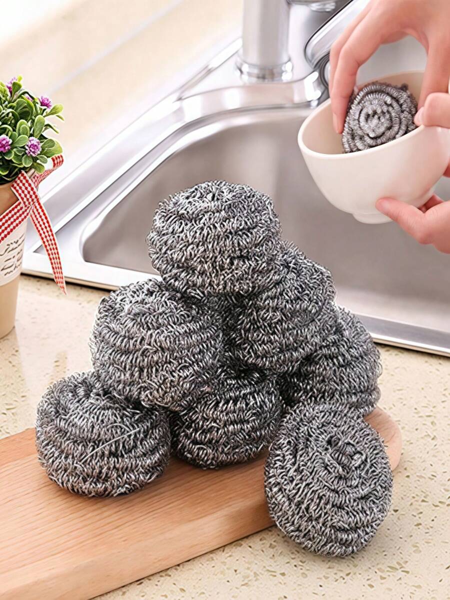 Pour le nettoyage de la vaisselle, des poêles, des casseroles, des fours, des grils, des éviers - Grattoir en acier inoxydable, Grattoir en laine d'acier, Utilisé pour éliminer les saletés tenaces des casseroles, poêles, cuisinières, grils, etc.