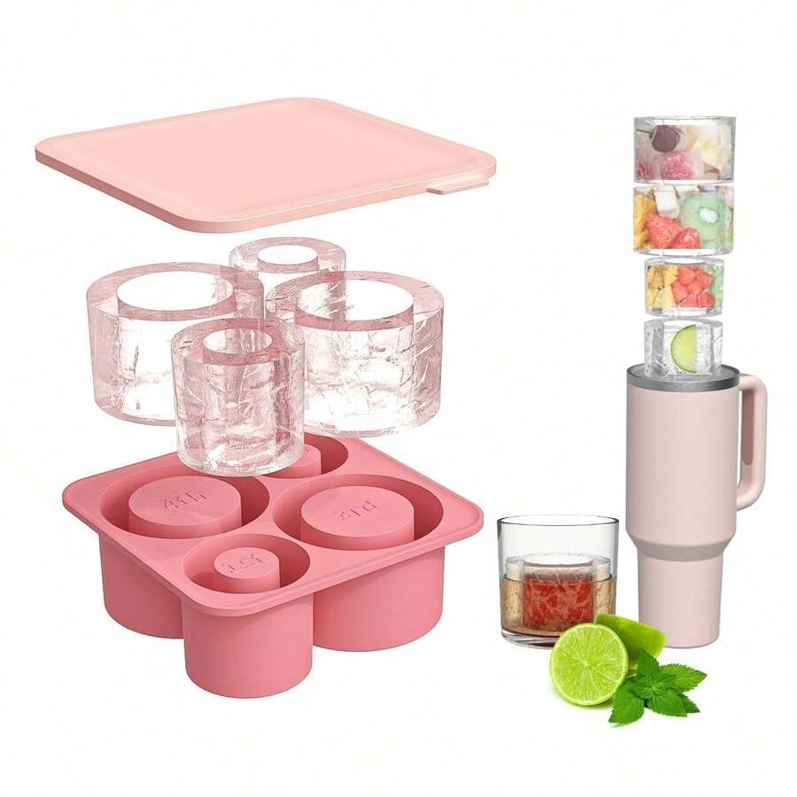 Bac à glaçons en silicone avec couvercle pour tasse de 20oz, 30oz, 40oz, moule à glaçons en silicone réutilisable pour boissons glacées, 4 pièces bac à glaçons cylindriques, accessoires pour tasse