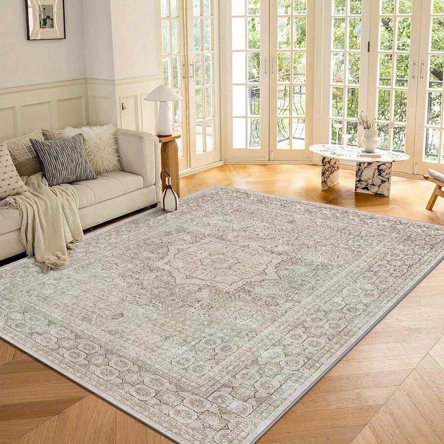 Grand tapis de sol bohème en velours - Doux, moelleux, lavable en machine, antidérapant, tapis rectangulaire avec motif floral, convient pour le salon, la chambre, la salle à manger et le bureau - Velours de polyester léger et résistant à la décoloration, tapis de salon décoration de Noël tapis de cuisine