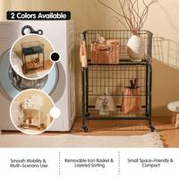 1 panier à linge à 1 couche - Panier à linge amovible en fer avec roues pour l'organisation et le stockage de la buanderie, chariot de tri de vêtements multifonctionnel et mobile, peut être utilisé comme chariot de rangement pour collations dans la chambre/le salon, convient pour la salle de bain, le balcon, l'appartement et autres petits espaces