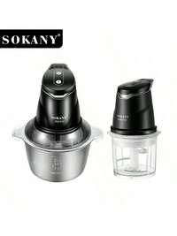 SmilingAngelSOKANY 7027 Hachoir électrique multifonction, grande capacité de 3 L, lames quadruples à double couche, 2 réglages de vitesse, puissance élevée de 800 W, en acier inoxydable, convient pour la maison et le restaurant, peut être utilisé comme mélangeur alimentaire, hachoir à viande, presse-ail, râpe à légumes, trancheuse d'oignon, également pour le traitement du gingembre, du piment, des fruits et de la viande. SOKANY 7020 Hachoir électrique à viande, peut hacher les légumes et écraser l'ail, outil de fabrication de pâte d'ail, grande capacité de 2 L, mélange rapide haute puissance de 400 W, lame de déchiquetage en acier inoxydable 304, convient pour hacher les légumes, oignons, ail, fruits, noix, salades et mélanger la pâte, convient pour les appareils électroménagers de cuisine