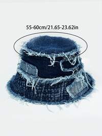 1 pièce Chapeau seau patchwork délavé pour homme, chapeau seau à franges tie-dye pour l'été/automne, casquette en denim de mode de rue convenant pour la sortie, la randonnée, le streetwear