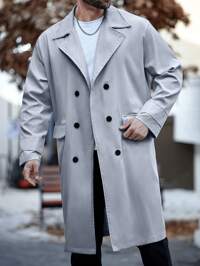 Manfinity ModeManfinity Mode Manteau trench ample à double boutonnage en tissu antistatique noir unicolore pour hommes grande taille, style INS. Manteau trench casual, cadeau pour petit ami/mari, cadeau d'anniversaire, manteau long pour hommes, manteau pour hommes, manteau trench à double boutonnage, manteau trench noir pour hommes, manteau trench pour hommes, style dark academia, vêtements pour hommes, vêtements d'extérieur pour hommes, manteau trench pour hommes, collection automne pour hommes