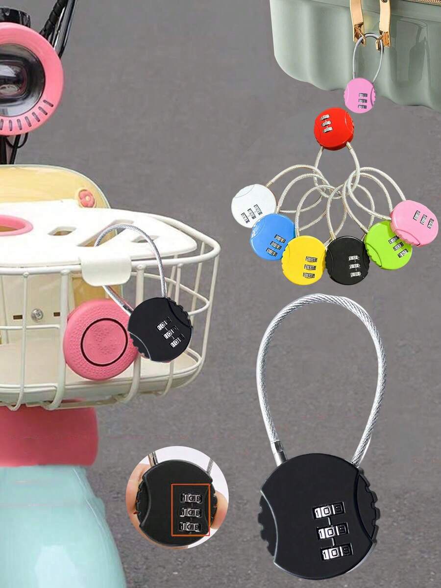 Mini cadenas antivol pour tiroirs, cadenas de bagage, cadenas à code avec câble en acier pour valises et sacs. Indispensables pour les vacances et les voyages. Cadenas de voyage à combinaison 3 chiffres (0-9) réglable, facile à utiliser pour les valises, sacs et bagages