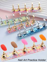 1 set de support d'affichage d'art des ongles magnétique, en matériau acrylique, convenant pour les faux ongles, avec options de couleur or ou argent, décoré d'étoiles, de cœurs, de fleurs, de paillettes, outil de pratique de l'art des ongles, convenant pour les débutants, peut être utilisé dans les salons de manucure