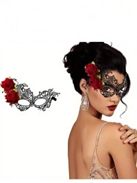 Masque de mascarade pour femme avec poignée, masque à demi-visage pour fête, convient pour Halloween, masque de mascarade à motif floral, accessoire de masque à demi-visage pour fête, célébration, représentation, convient pour divers festivals et événements, mystérieux, beau cadeau pour la Saint-Valentin, Noël, Halloween
