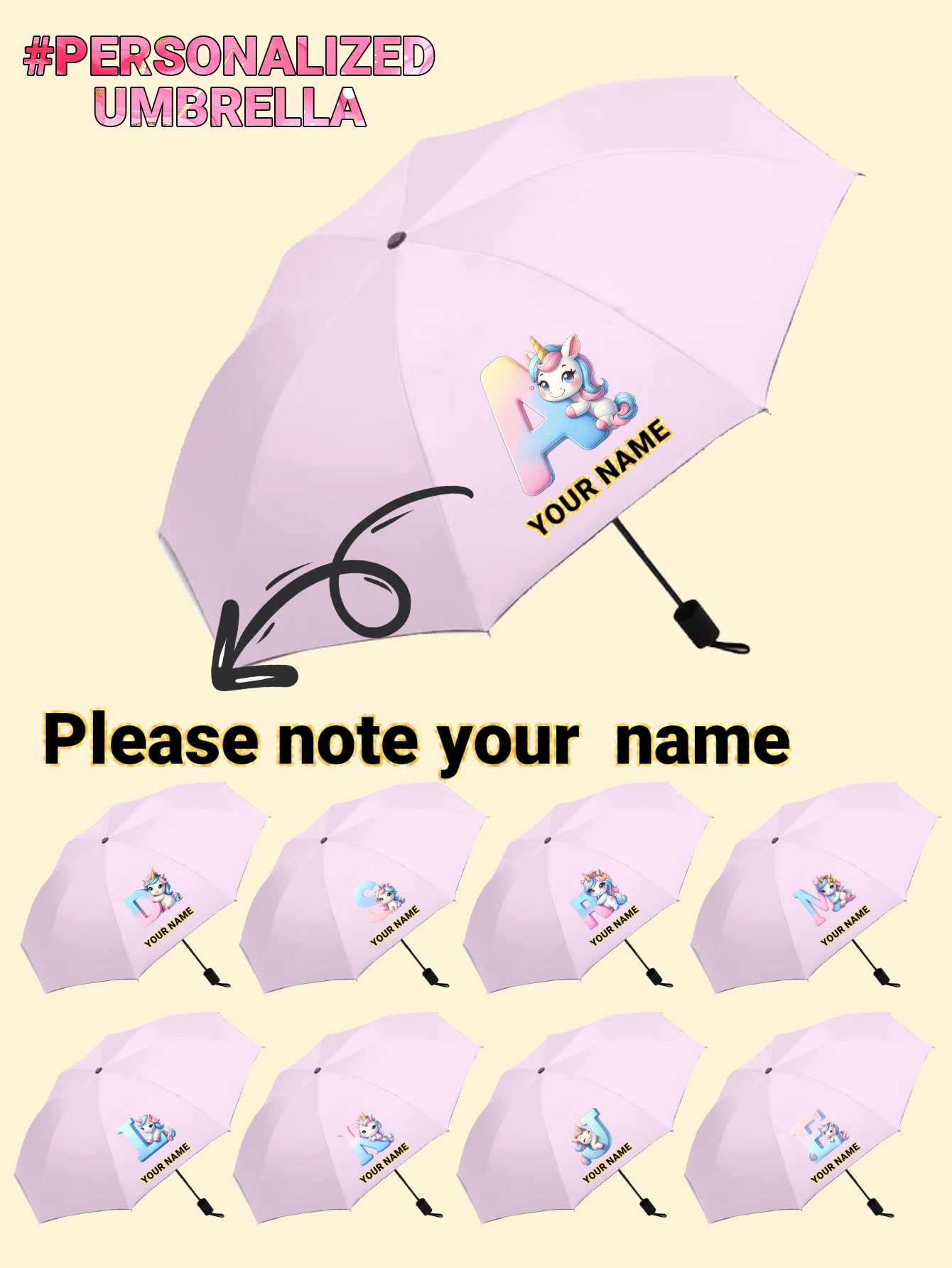 Parapluie personnalisé imprimé avec logo/lettre/nom pour enfants, idéal pour la commerciale, l'ouverture de l'entreprise, les petits cadeaux, les cadeaux de rentrée scolaire pour les enfants