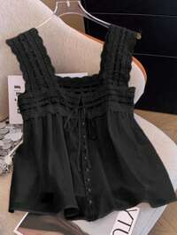 Elenzga CURVEElenzga Débardeur élégant pour femmes grandes tailles en maille noire avec doublure nude et imprimé dentelle, avec volant à l'ourlet. Convient pour la rentrée des classes, la remise des diplômes, la Saint-Valentin, les festivals de musique, la fête des mères, Halloween, Thanksgiving, Pâques, le bal de promo, les sorties en couple, la saison des mariages, les activités en extérieur