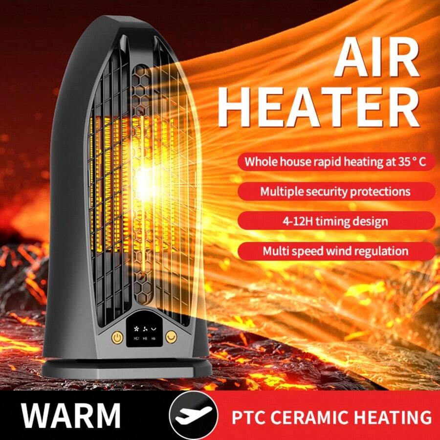 1 pièce Radiateur électrique portable oscillant automatique 1200W pour bureau/dortoir/voyage, chauffage rapide par PTC, puissant souffleur d'air chaud pour usage domestique