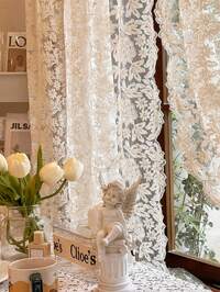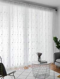 Cirelle1 pièce Rideau transparent brodé de marguerites françaises et de libellules, avec poche pour tringle haute, léger et respirant, tissu finement tissé, anti-moustique, lavable en machine, décoration de ferme romantique pour fenêtres et portes de la maison, convient pour la chambre à coucher, le dressing, le salon, la salle à manger, le bureau, le séparateur de pièce