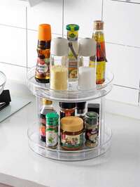 1 pièce Présentoir à épices rotatif à 360°, en matériau transparent PET, charge solide, grande capacité de stockage pour assaisonnements, conserves, collations, rangement ordonné du comptoir, convient pour la cuisine, la salle de bain, la coiffeuse, accès facile, options de tailles multiples pour répondre à différents besoins, design transparent pour une organisation nette, assistant de rangement domestique pratique NEW
