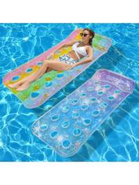 1 pièce Hamac de piscine gonflable avec maille - Transat gonflable rayé pour adulte, convient pour les vacances, les fêtes et la détente, disponible en rose, jaune, blanc, vert, bleu et autres couleurs, hamac d'extérieur, essentiel pour la plage et la piscine, idéal pour la photographie