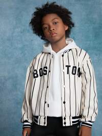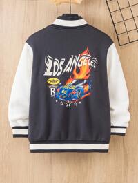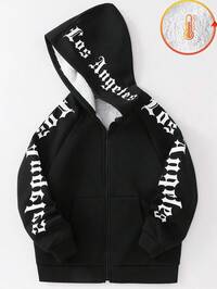 SUMWON KidsSHEIN Veste à capuche zippée en tricot épais avec graphique de lettre, style décontracté de rue pour garçons enfants/pré-adolescents, rouge et noir, convient pour les trajets, l'école, le casual quotidien, les voyages, les sports, le printemps, l'été, l'automne, l'hiver