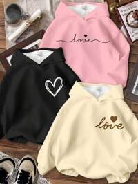 3 pièces/Paquet Sweat-shirt-shirt ample et confortable à manches longues pour fille préado, imprimé cœur peint à la main, rose frais + noir, convient pour l'automne/l'hiver, la rentrée scolaire, style années 2000, vêtements coréens, vêtements d'automne, vêtements d'hiver, bal de promo, style grunge, rayé, confort facile, enfants stylés