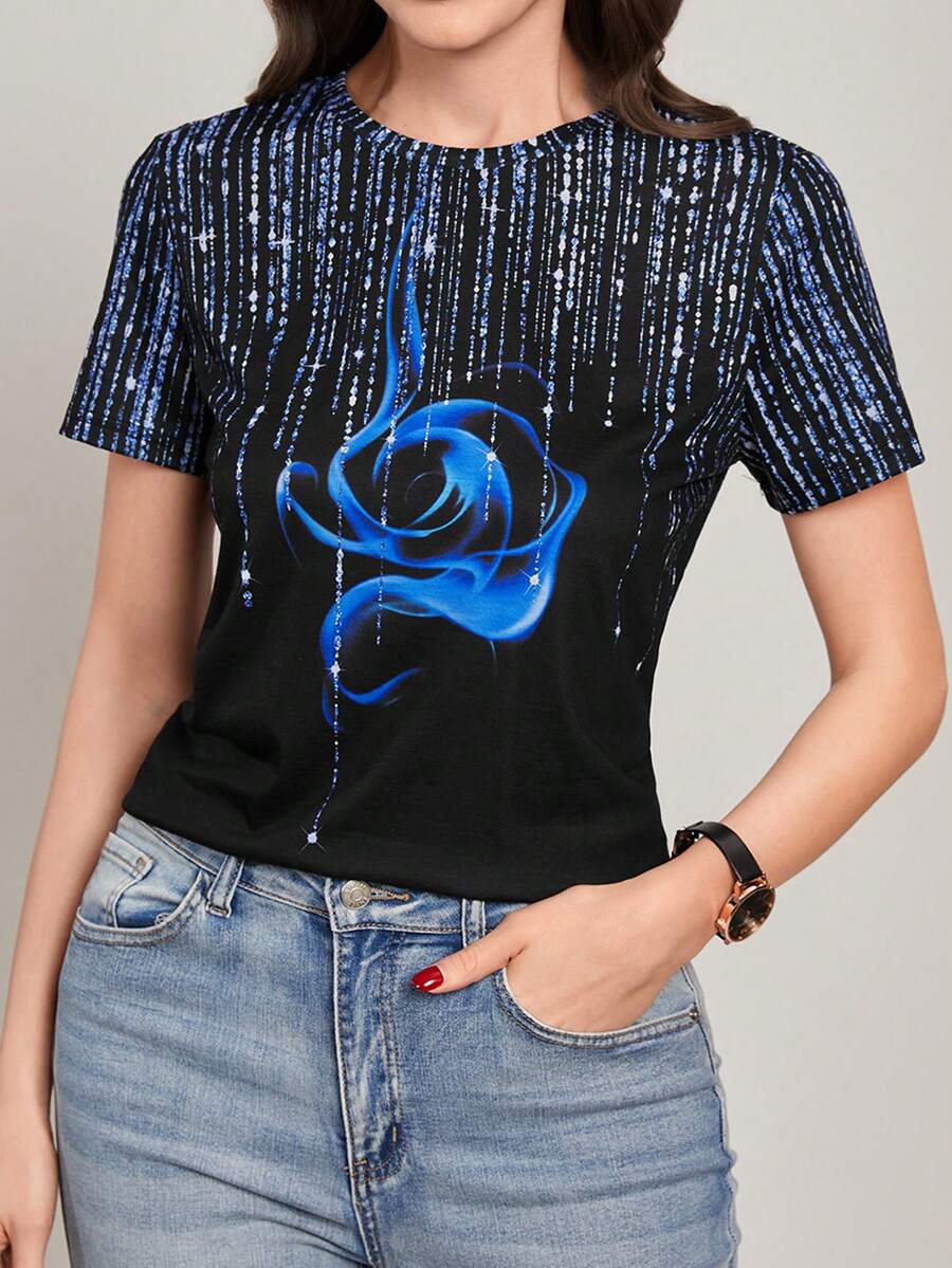 SHEIN LUNE تي شيرت نسائي قصير الأكمام مطبع بالزهور