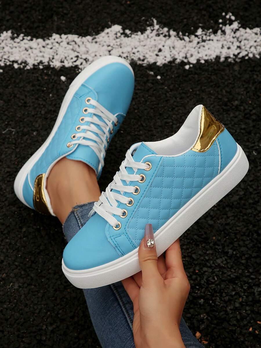 Nouvelles baskets plates et décontractées pour femmes avec bout rond, lacets et semelle antidérapante, en noir. Diverses options de couleurs, convient pour le printemps et l'automne