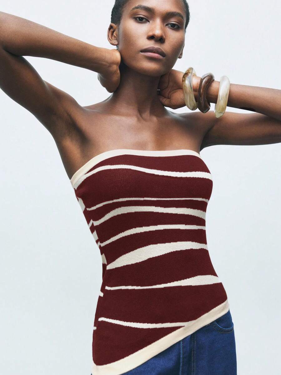 Maija Top asymétrique bicolore pour femmes, polyvalent pour le trajet urbain, les affaires, le style casual, la plage, le style boho, élégant, Noël et Nouvel An