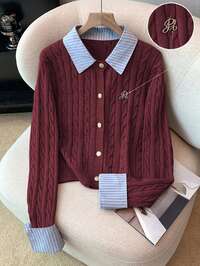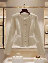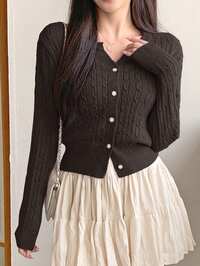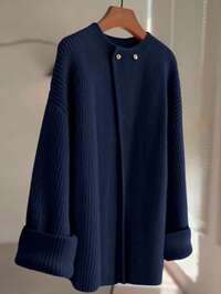 GlowEveFemmes Cardigan tricoté à col V de couleur unie avec boutons irréguliers, manches longues. , minimaliste, élégant, chic, décontracté, polyvalent, style ample. Convient pour les trajets quotidiens, veste en tricot, vêtements d'automne/hiver, Nouvel An