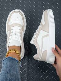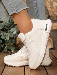 WARRIOR SHOES 1 paire de chaussures décontractées à semelle épaisse pour femmes WARRIOR, à lacets, à semelle souple, chaussures plates basses pour l'extérieur, à bout rond, à talon bas antidérapant, de couleur unie élégante, à semelle souple, convenant aux étudiantes, aux photos de remise des diplômes, chaussures plates, chaussures de sport basses pour le skateboard