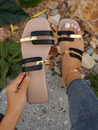 TravachicTravachic 2025 Nouvelles sandales plates, 1 paire de sandales plates élégantes et vintage avec boucle dorée, chaussures de mode pour les vacances, la plage, les sorties, convient pour la plage, les vacances, les mariages, les fêtes, le bureau, la maison