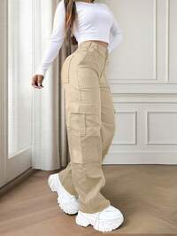 DazyPantalon de loisirs élégant et mignon Y2K à boutons et à poches multiples de couleur unie. Convient pour la rentrée scolaire, les clubs, les anniversaires, Halloween, le Nouvel An, Thanksgiving, les concerts, les salles de sport, les plages, les vacances, les affaires, les tenues quotidiennes pour l'aéroport, le style de rue, la Fête des enseignants, le printemps, l'été, l'automne et l'hiver.