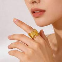 Aomogo Official StoreEnsemble de bagues dépareillées plaquées or 14 carats pour femmes | 3 bagues statement épaisses | Ensemble de bandes empilables, bague épaisses, martelées, torsadées, tressées, bijoux de doigts pour teen girls, bagues épaisses dorées pour femmes, bagues argentées ajustables, bagues larges audacieuses en or, bague statement, bague ouverte en dôme, bagues argentées épaisses pour femmes, bagues simples minimalistes