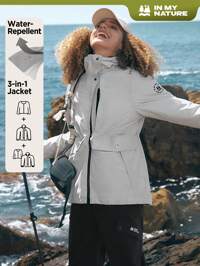 NASBINGKEFITEVD Veste de ski d'hiver pour femmes, résistante à l'eau, coupe-vent, doublée thermique, avec capuche. Vêtements d'hiver, coupe-vent, pour randonnée, ski, camping, montagne. Polaire, ski blanc
