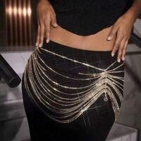 hessiChaîne de taille à long gland plaqué or avec cristaux, une frange sexy et brillante et une robe ornée de cristaux pour la danse du ventre, avec une chaîne de corps en accessoire, convient aux performances occidentales. Chaîne de taille, chaîne de corps sexy, brillante, fluide, jupe à strass, accessoires de danse du ventre, spectacle, Europe et Amérique 1 pièce Chaîne de corps, de taille, style européen et américain, pendentif en forme de pentagone creux brillant avec sequins, chaîne réglable à gland, accessoire sexy pour femmes, convient pour la plage, la boîte de nuit, la fête des mères, les festivals de musique, le port quotidien